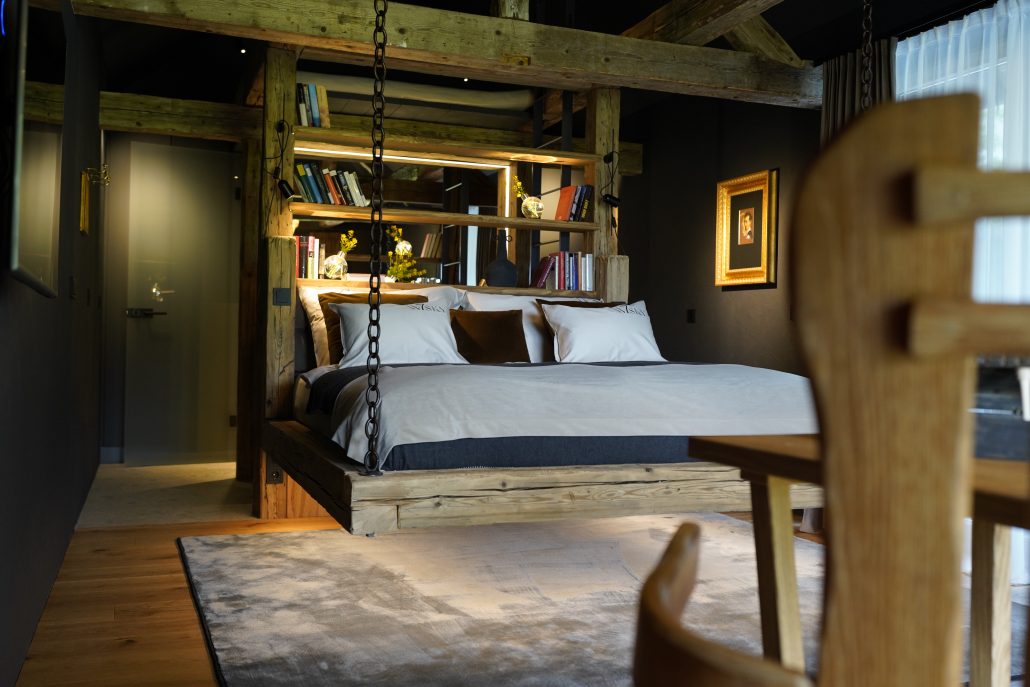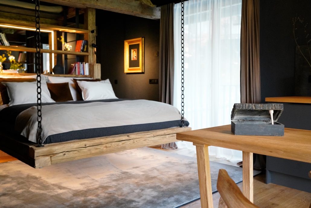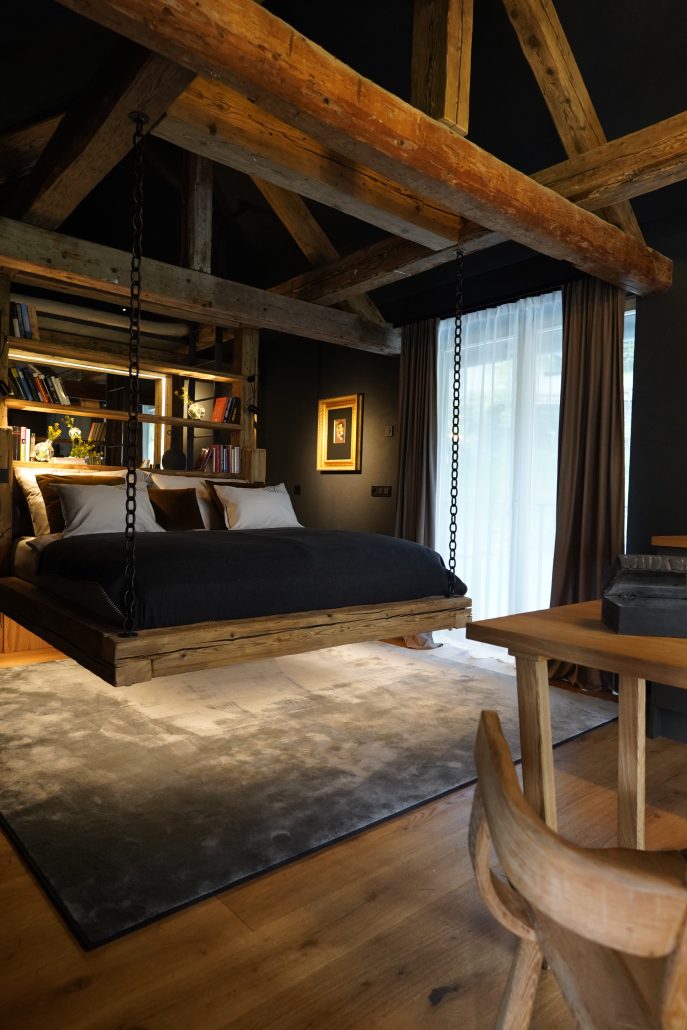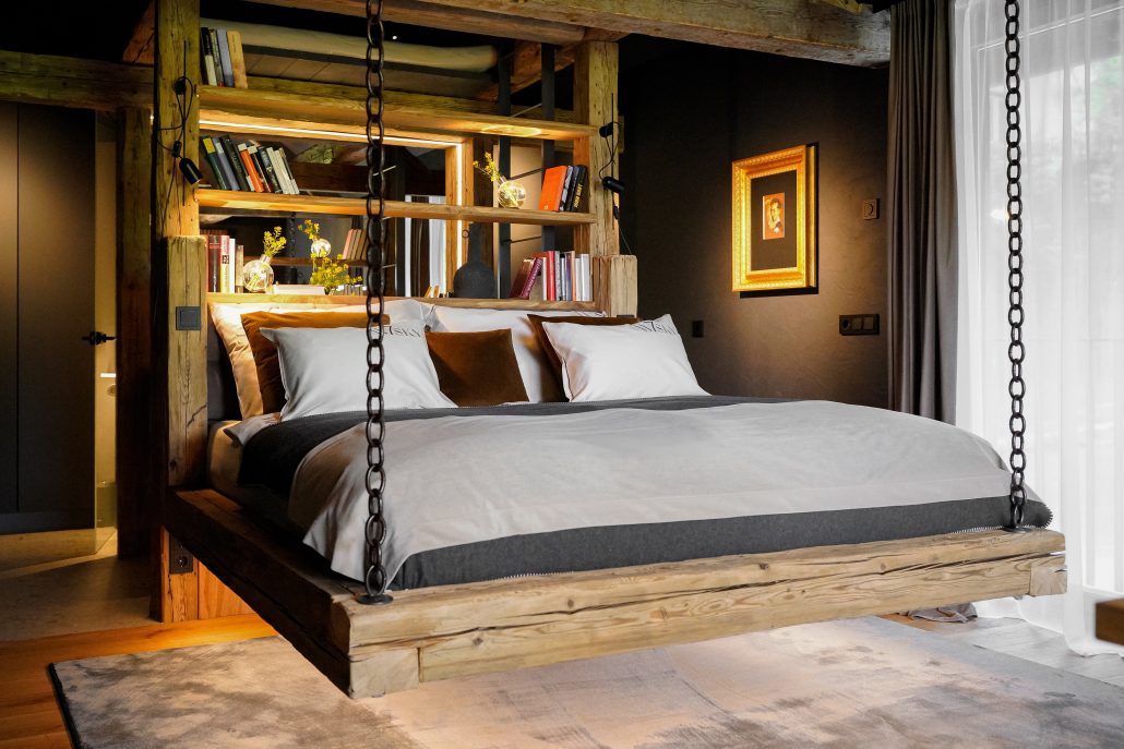 At the heart of Romantine, the handcrafted sleeping bed appears to hover in space.