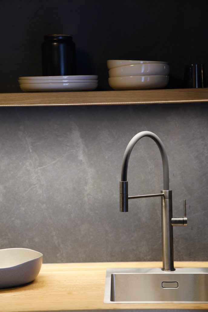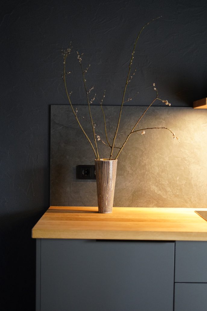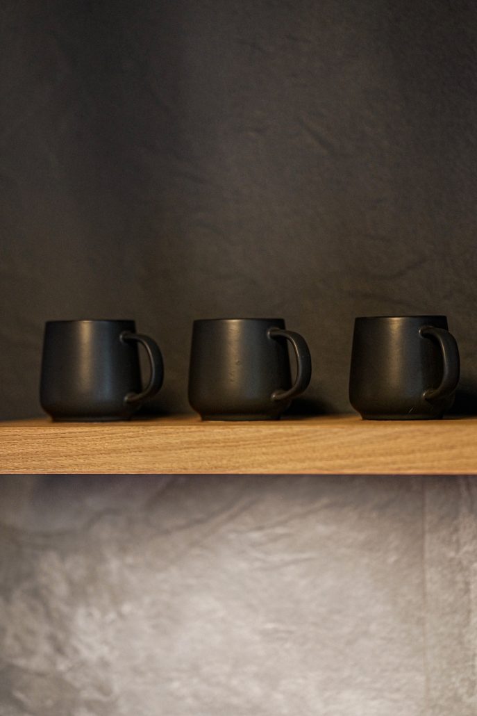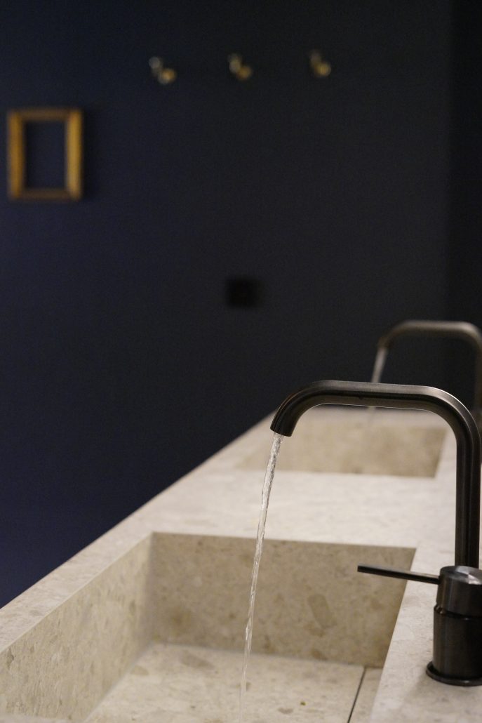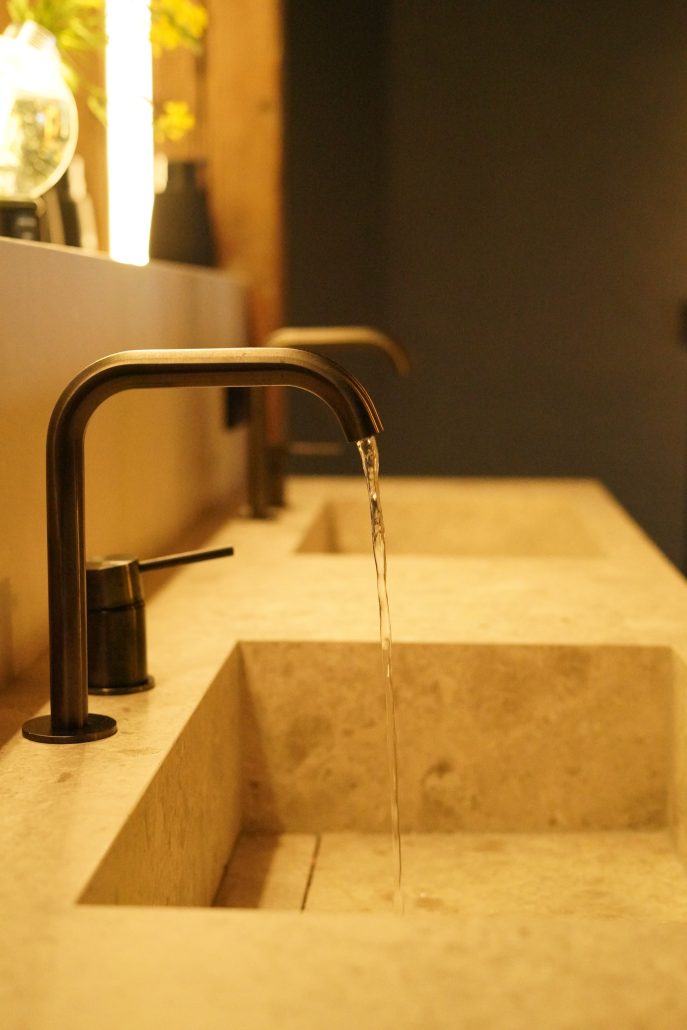 Thoughtful, intimate, and sculptural, the space reads like a visual poem: dark, textured walls softened by natural light; raw materials balanced by artisanal detail; a quiet sense of stillness carried through every corner.