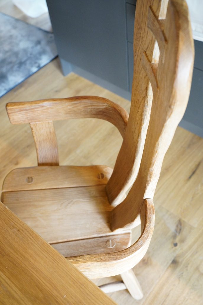 The dining zone is anchored by a rare set of Kunstmeubelen De Puydt – “Tron” brutalist chairs from the 1970s — powerful carved forms with a monumental, almost ceremonial presence.