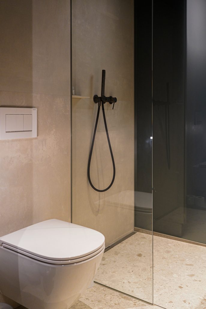 The bathroom becomes a space of ritual and restoration, stocked with refined bathing amenities, soft towels, bathrobes and a hairdryer — designed to support both morning and evening routines.