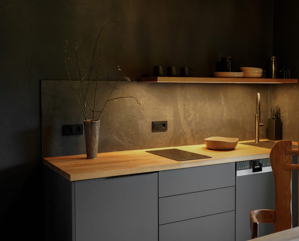 Each element is deliberately restrained, allowing materials to hold the atmosphere — not as decoration, but as presence.
